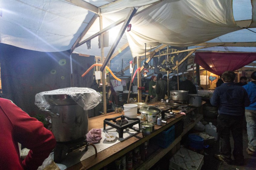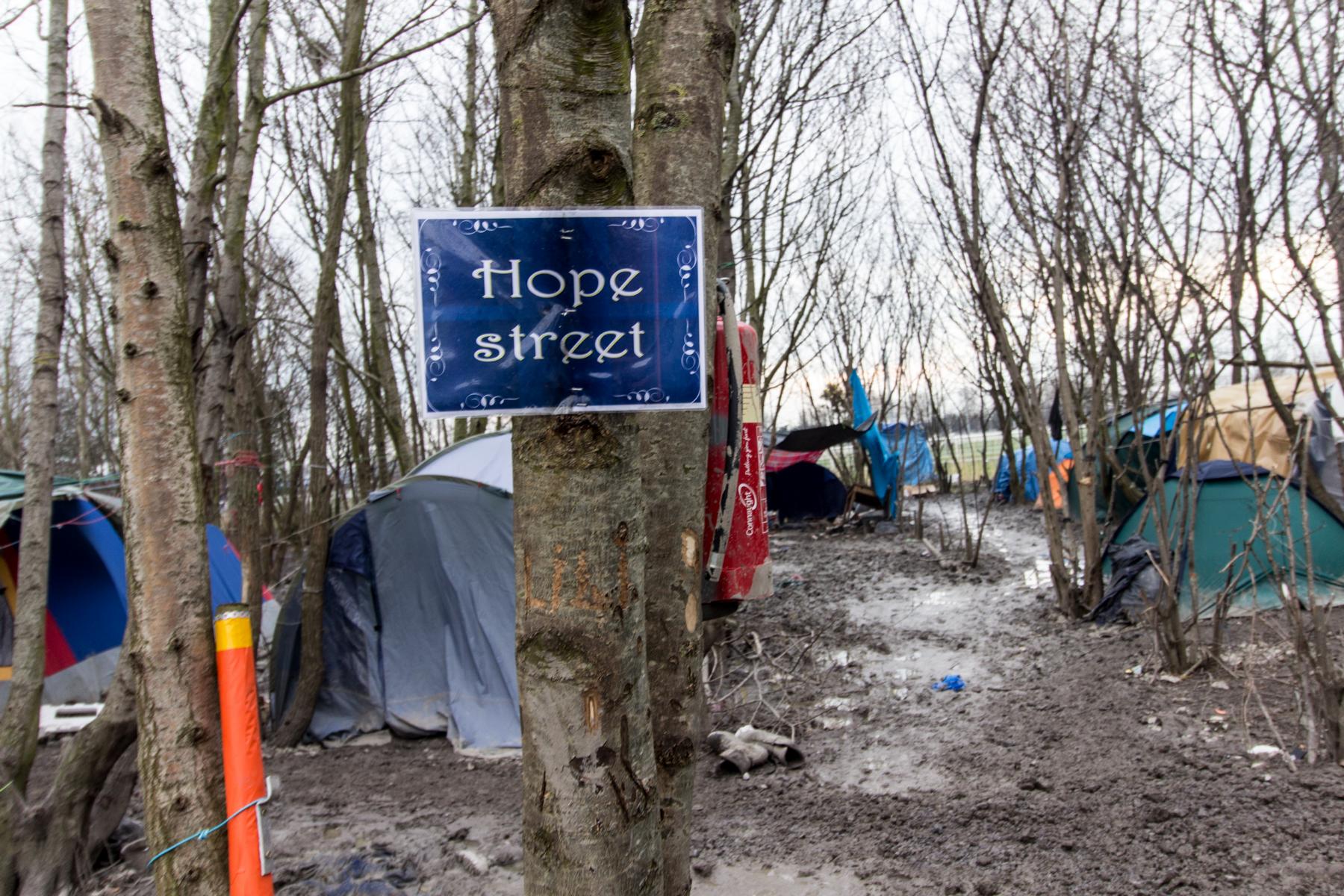 Nun sind sie alle hier und verbringen den Tag mit Warten. Warten auf die nächste Chance, den Kanal zu überqueren. In Frankreich will hier keiner bleiben, der französische Staat kümmert sich nicht. Ein Schild, welches die Stadt aufgehängt hat, trägt Informationen in Englisch, Arabisch, Farsi und Dari. Kurdisch? Fehlanzeige. Nur ein paar Polizisten zeigen am Eingang Präsenz und lassen keinerlei Baumaterialien ins Camp. Auch Lieferungen mit Schlafsäcken werden immer wieder blockiert. Heute dürfen auch „Ärzte ohne Grenzen“ nicht ins Camp. Warum, weiß niemand. Das bedeutet: Keine Duschen und keine medizinische Versorgung. Immerhin werden die 30 Dixi-Klos heute geleert. Wer die Queen Elizabeth Street verlässt begibt sich in knöcheltiefen Matsch, der je nach Regenmenge auch knietief sein kann. Zelte, soweit das Auge reicht. Auf dem aschgrauen Boden stapelt sich Müll.