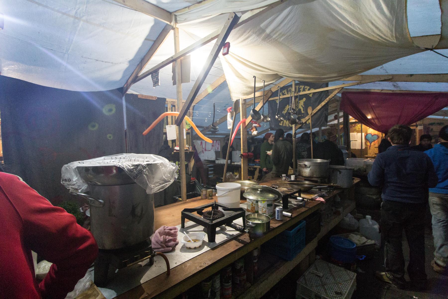 Während es dunkel wird, steigen überall im Lager Feuer auf. Der stechende Geruch von verbranntem Kunststoff liegt in der Luft. Die Campbewohner verbrennen aus Mangel an Feuerholz Plastik. Neben den Lagerfeuern fangen Menschen an zu singen. Die Stimmung ist fröhlich, die Lieder handeln von der Heimat und dem Sehnsuchtsort England. In der Küche wird kurdisches Essen - Reis und Linsensuppe - aus riesigen Töpfen gereicht. Gleichzeitig drängen immer mehr Menschen hinein in das Küchenzelt, denn draußen steigt ihnen reizendes Gas in die Augen.