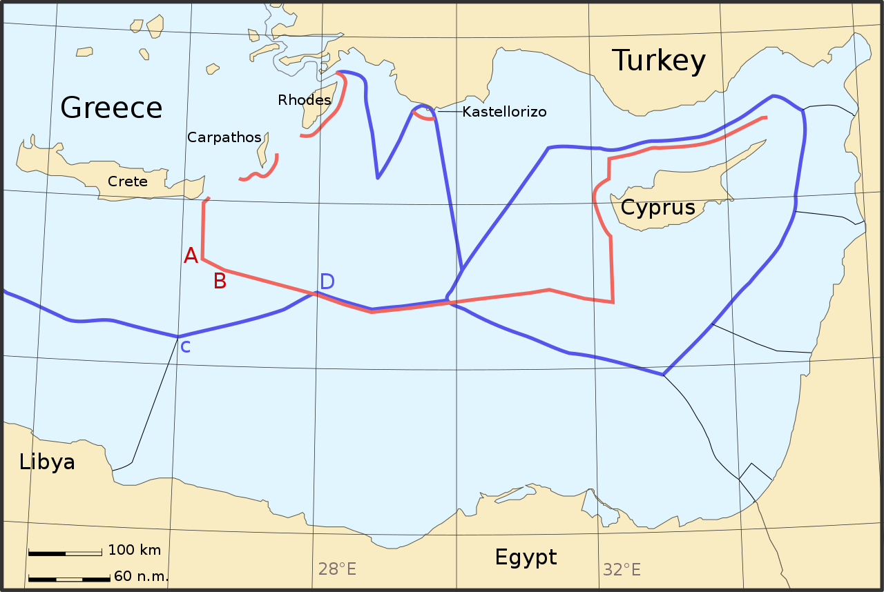 Or, la Grèce, quant à elle, reconnait les accords de Montego Bay et souhaite l’application du droit de la mer, tel que considéré par l’ONU, aux eaux de la Mer Egée. Pour la Grèce, sa ZEE s’étend le long des côtes de chaque île sous souveraineté grecque, en respect du droit international. Cette contestation de la souveraineté maritime de la Grèce se couple à une contestation de la souveraineté terrestre de la Grèce sur certaines îles égéennes par la Turquie, par exemple celle de Kardak. Ce conflit provoqué par la Turquie a pour but l’exploitation des sous-sols de la Mer Egée, supposée riche en gaz. L’envoie par la Turquie du bateau d’exploration de gisement de gaz « Oruç-Reis » escorté par des vaisseaux militaires turcs au large des côtes helléniques, c’est-à-dire dans la ZEE revendiquée par l’Hellade, n’a fait qu’agrandir le différend qui risque aujourd’hui de dégénérer en guerre ouverte.