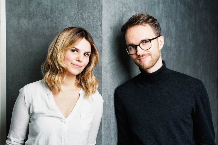 Vincent im Studio mit seiner Podcast-Partnerin Tanja Hille für ihren gemeinsamen Podcast Y Politik. Foto: zur Verfügung gestellt von Capital Headshots Berlin